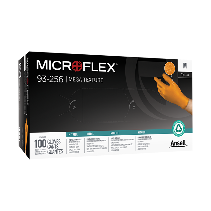 Artikelnummer C28392 Bezeichnung Nitril Einweghandschuhe MICROFLEX 93-256 ----Attr01---- Farbe orange Gebinde Grösse XXL (10.5 - 11) Hersteller-Nr 93256110 Inhalt Länge 240mm Marke Ansell Material ----Attr06---- Spezielles Stk. 100 Typ Verfügbarkeit