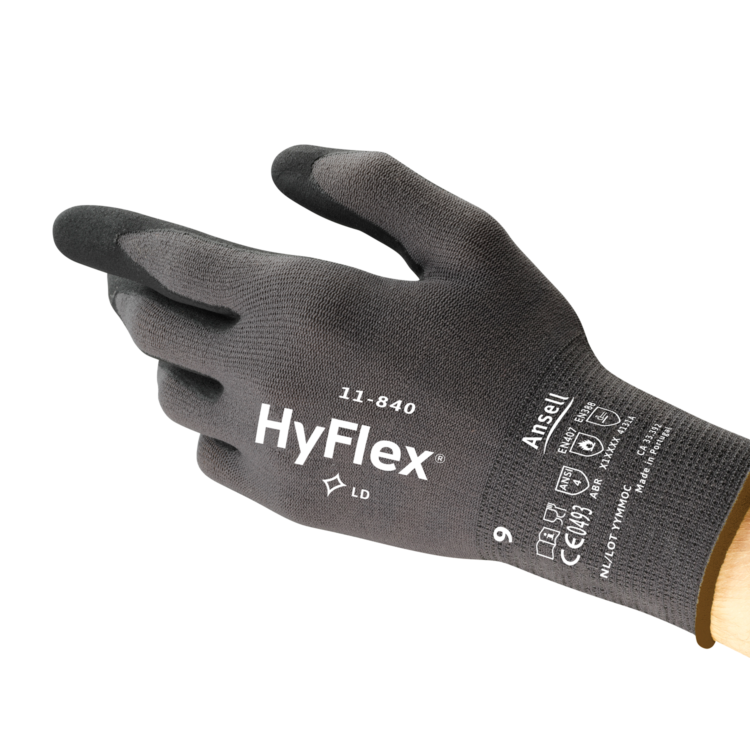 - Die robuste FORTIX?-Nitrilschaumbeschichtung mit einer Dicke von 1,1 mm zeichnet sich durch eine Abriebfestigkeit der EN-Stufe 4 aus und bietet somit einen bis zu dreimal grösseren Schutz vor Schürfwunden als andere leichte Handschuhe mit Beschichtung. - Die FORTIX?-Beschichtung bietet eine um 20 % grössere Atmungsaktivität als frühere Formulierungen. Das Ergebnis: Kühlere, trockenere Hände, weniger Schweissbildung. - Das Trägermaterial ist der Anatomie der Hand angepasst und bietet somit einen hohen Tragekomfort fast wie eine zweite Haut: an der Wurzel des kleinen Fingers (für höheren Tragekomfort), an den Fingerspitzen (herausragende Tastsensibilität) und über die gesamte Innenhandfläche (für mehr Bewegungsfreiheit). - Seine Ausgewogenheit zwischen robuster Abriebfestigkeit, erhöhtem Tragekomfort und grösserer Bewegungsfreiheit macht den HyFlex 11- 840 zum idealen Handschuh bei einem häufigen Wechsel zwischen Arbeiten. - Silikonfreies Material bedeutet: Keine Verunreinigung von Metallteilen vor Lackierarbeiten durch eine Übertragung von freigesetzten Silikonpartikeln.